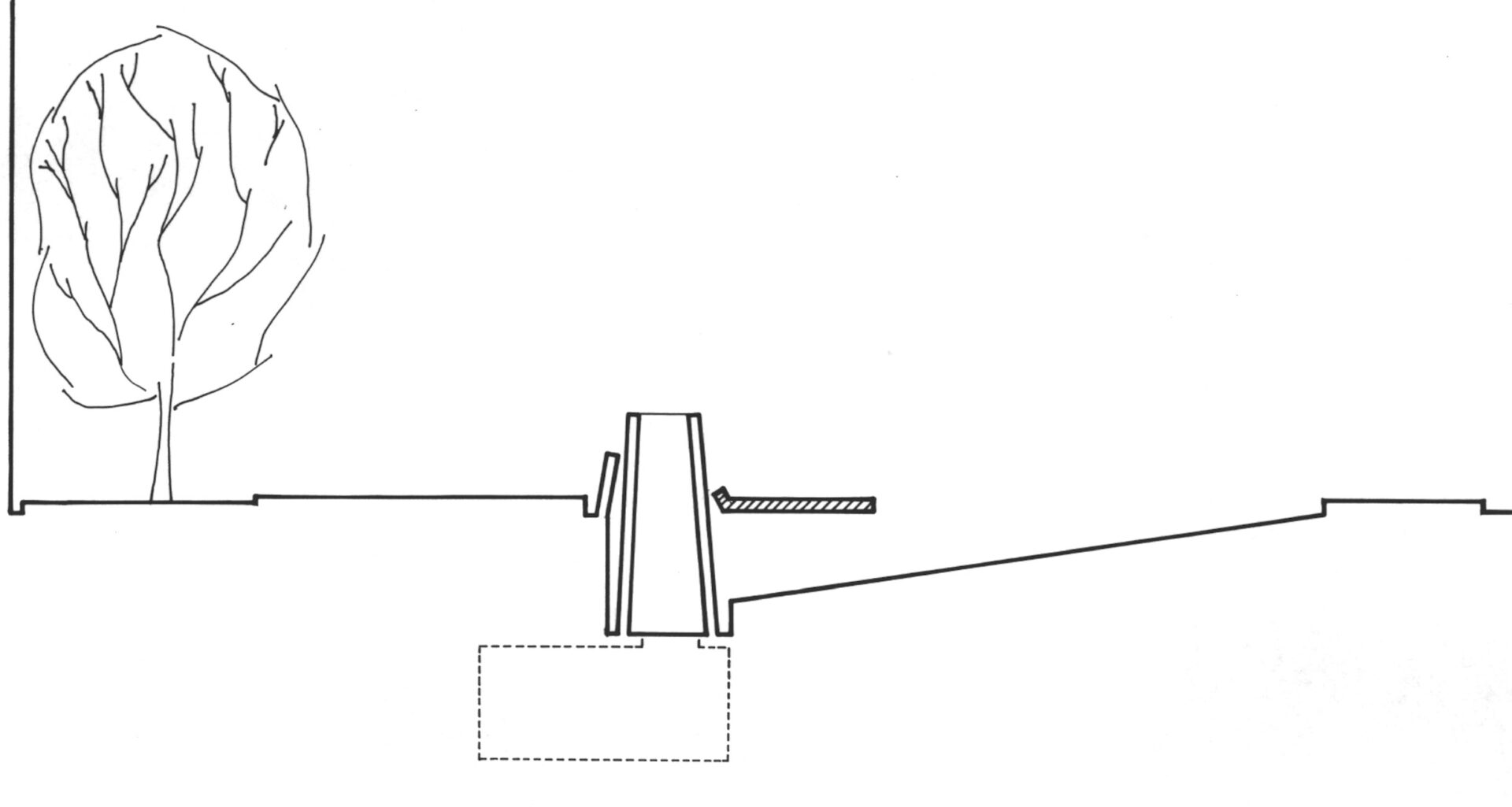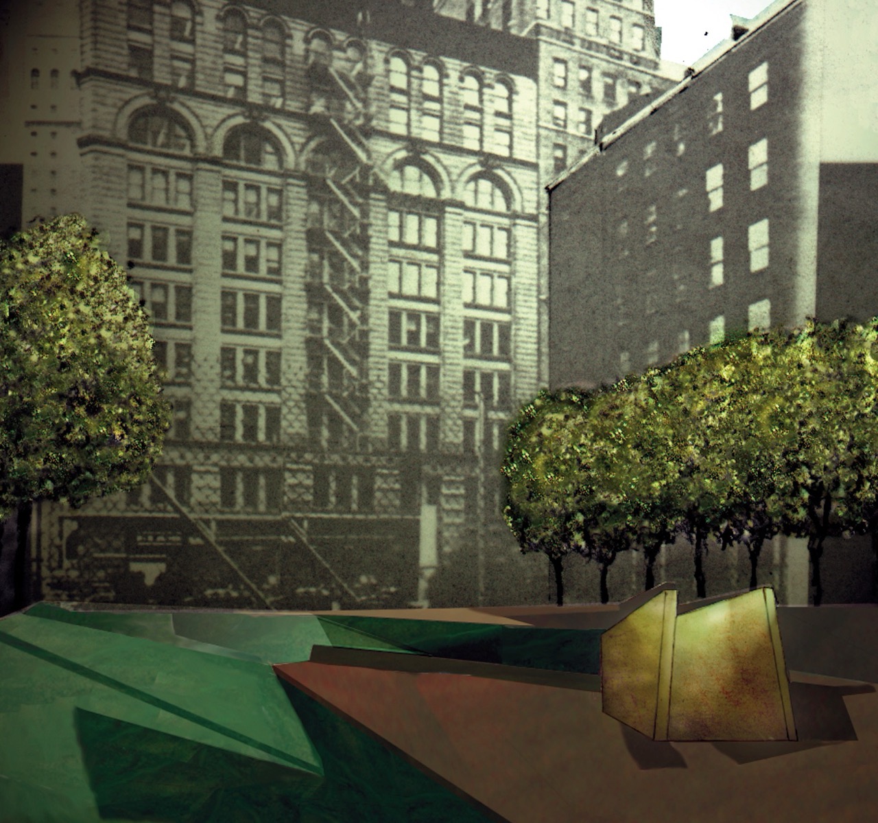 The premise of this design was also to create a spatial setting in the dense urban area that served as a refuge. As the forests outside early Manhattan served as the sanctuary for escaped slaves, the project created a lowered gathering place set within a mature grove of trees.