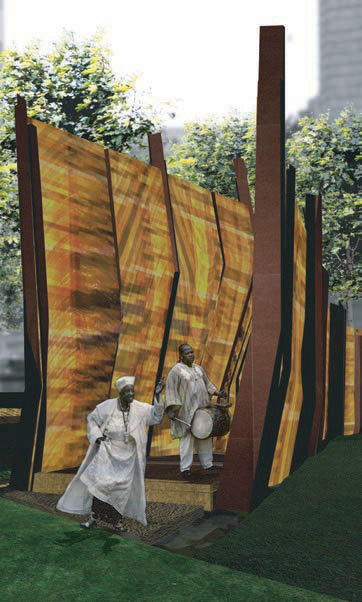 The competition entry was a collaboration between Paul Kariouk and Mabel Wilson (New York City), public artist John Outerbridge (Los Angeles), Dean-Wolf Architects (New York City), and landscape architect Walter Hood (Berkeley) — collectively known as Groundworks.