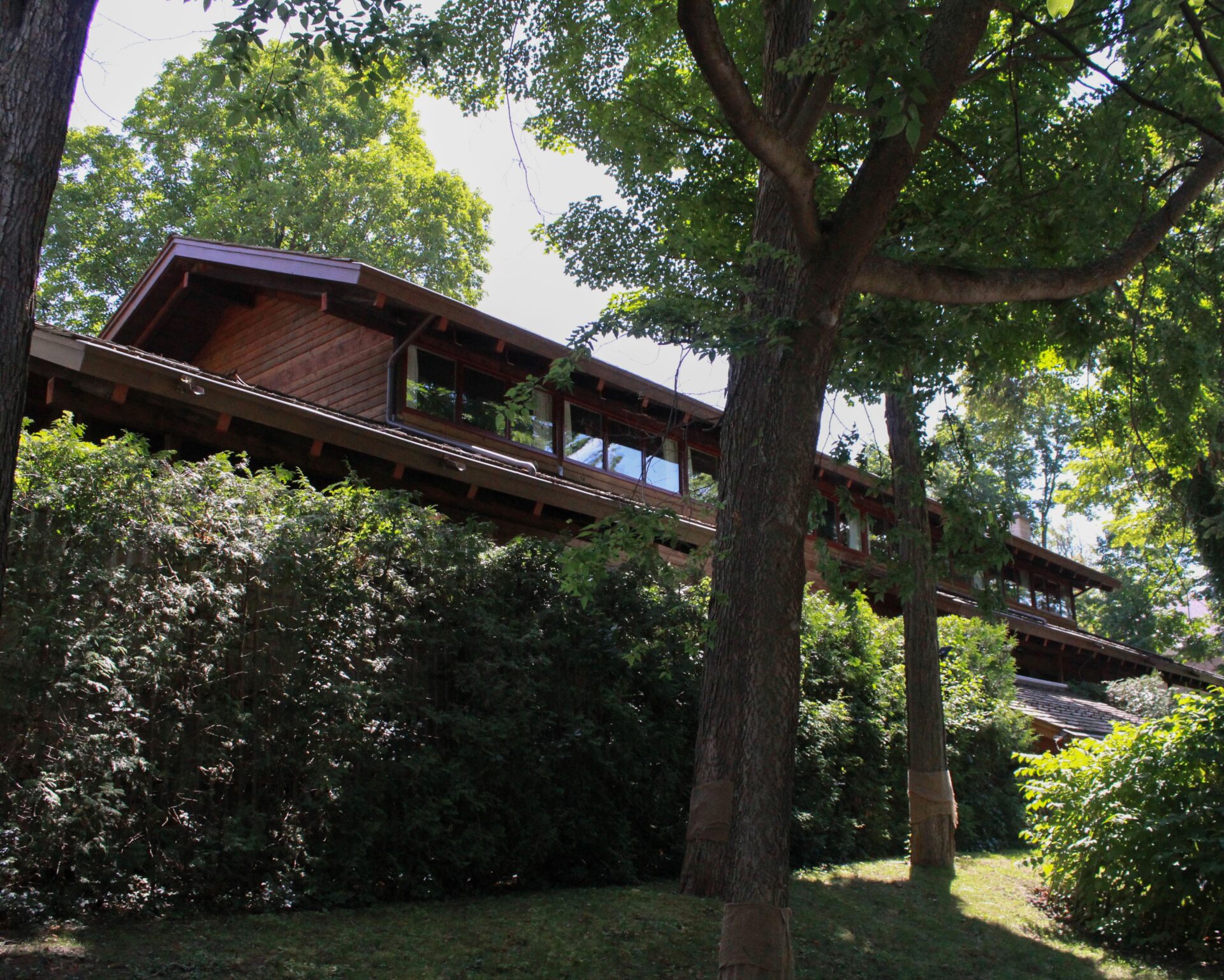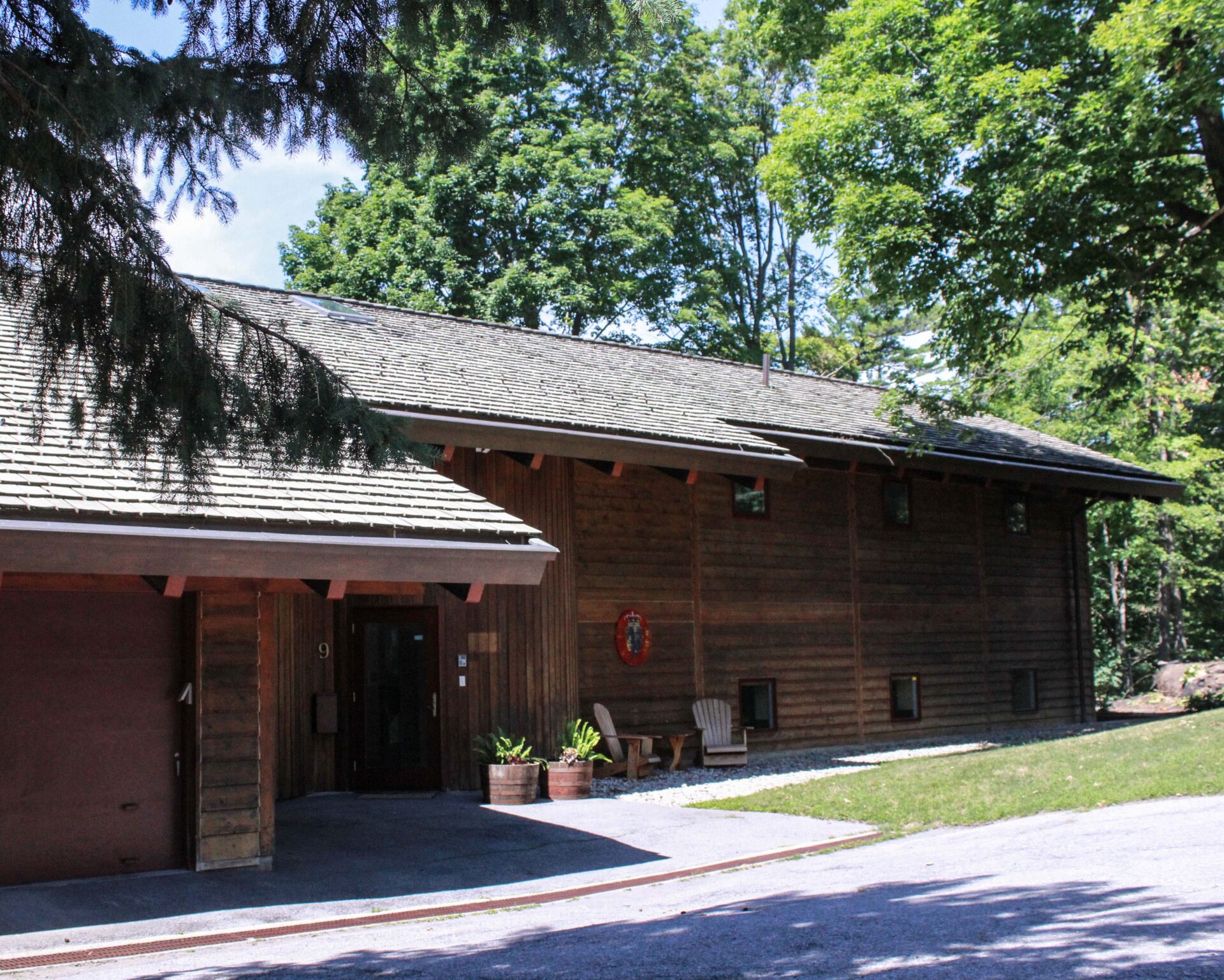 (Right) Nestled into mature greenery, the building fits right into the surrounding residential neighbourhood.