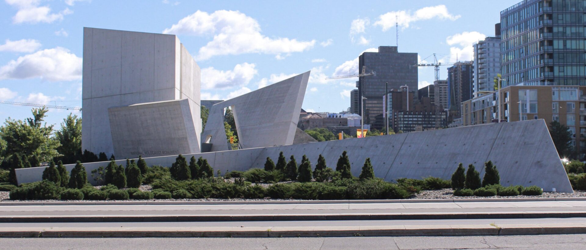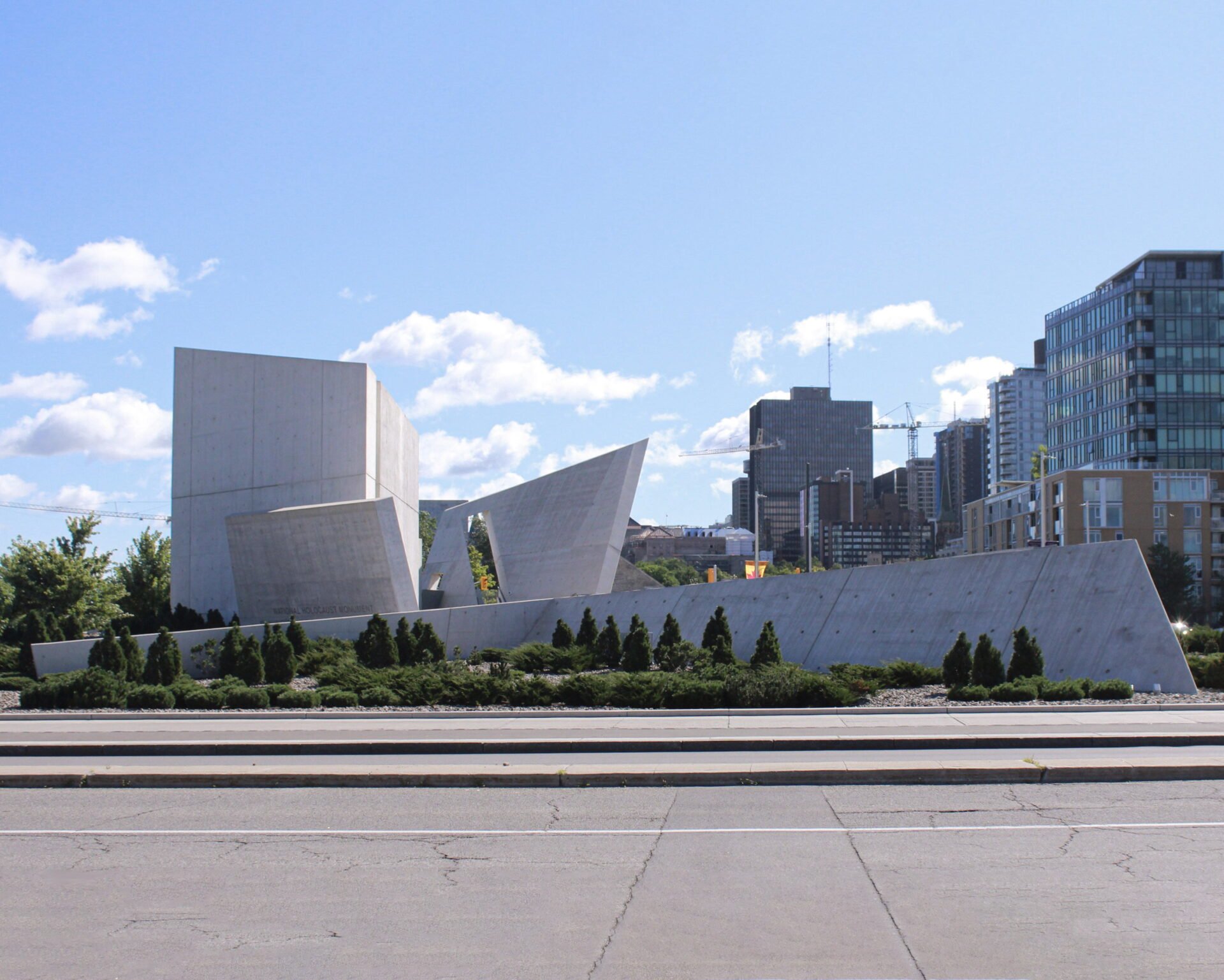 (Left) Approaching the Holocaust Memorial at the intersection of Booth and Wellington.