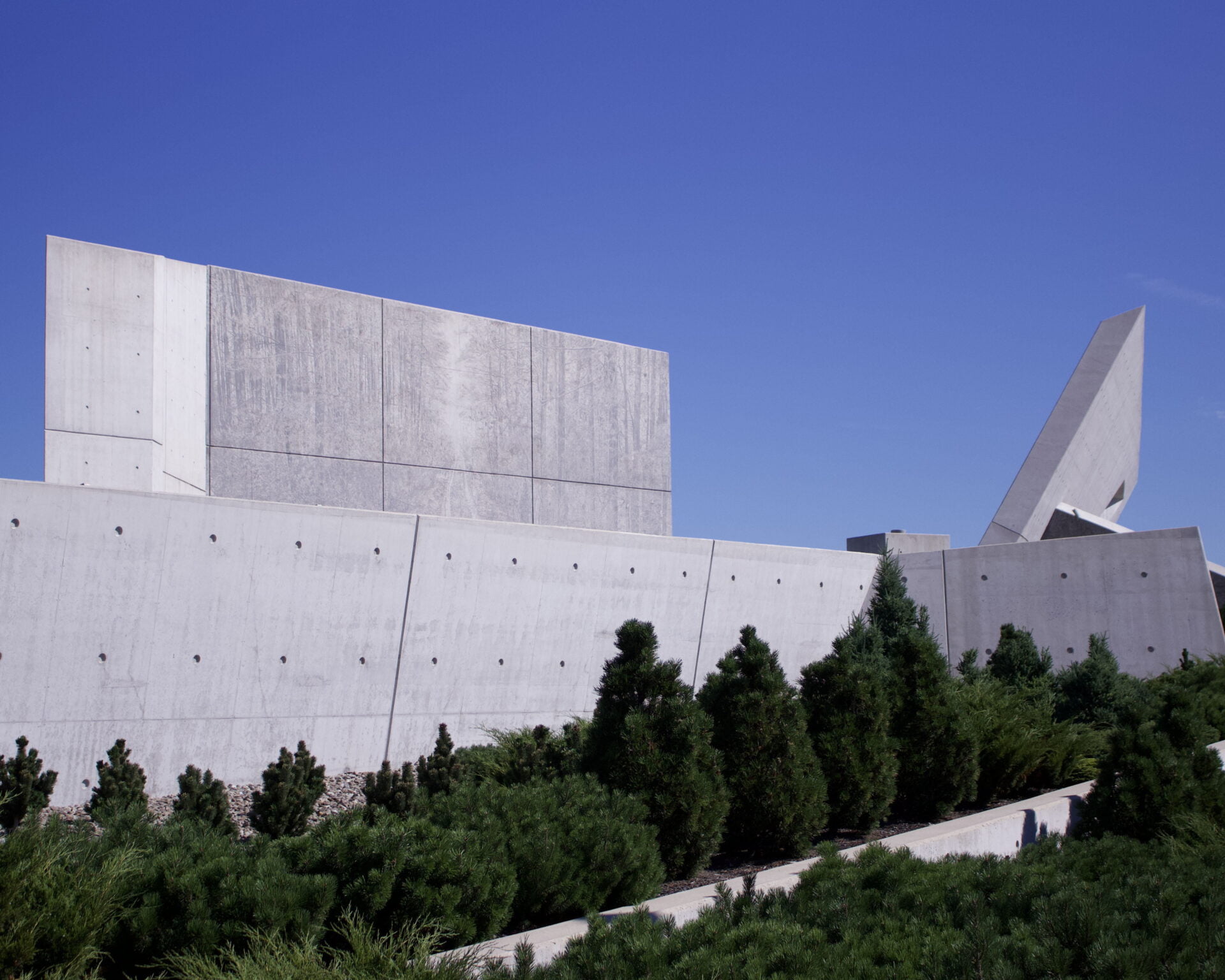 The architect who won the competition for this monument, Daniel Libeskind, was also the architect for the Jewish Museum Berlin. Both are built in the Deconstructivist style, which is characterised by angular shapes and seemingly disjointed planes that appear to be in conflict with each other.