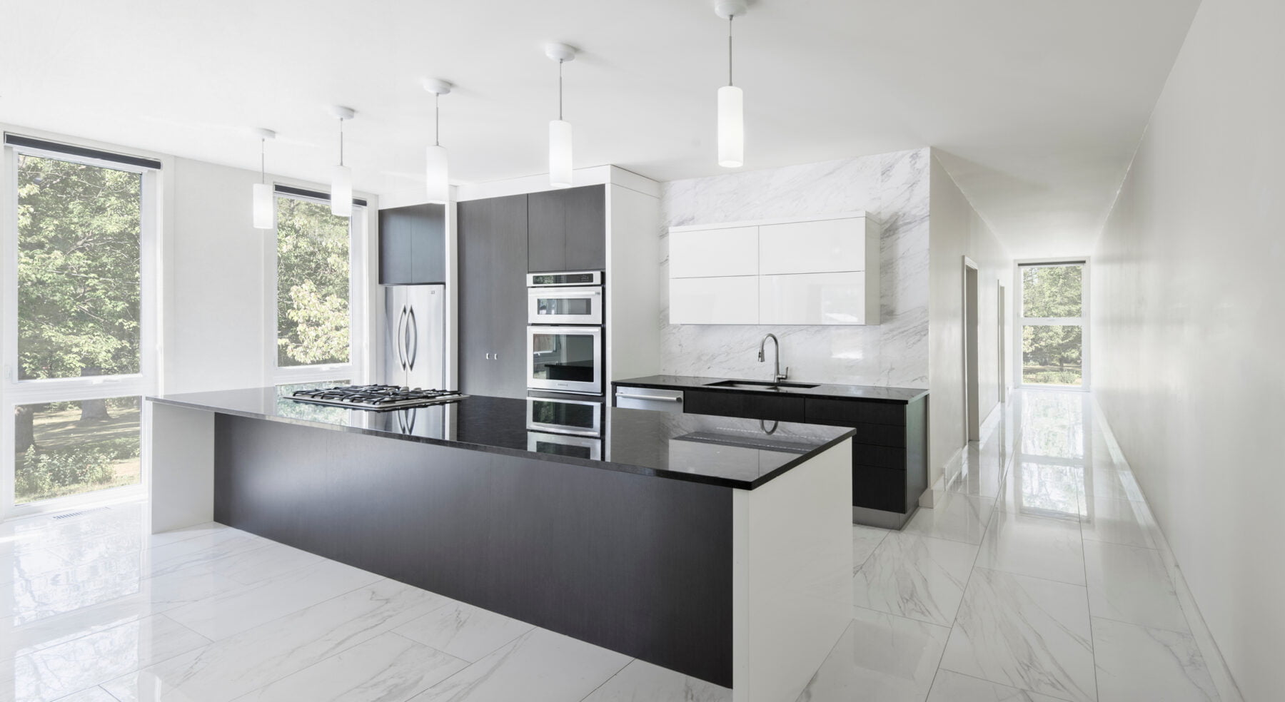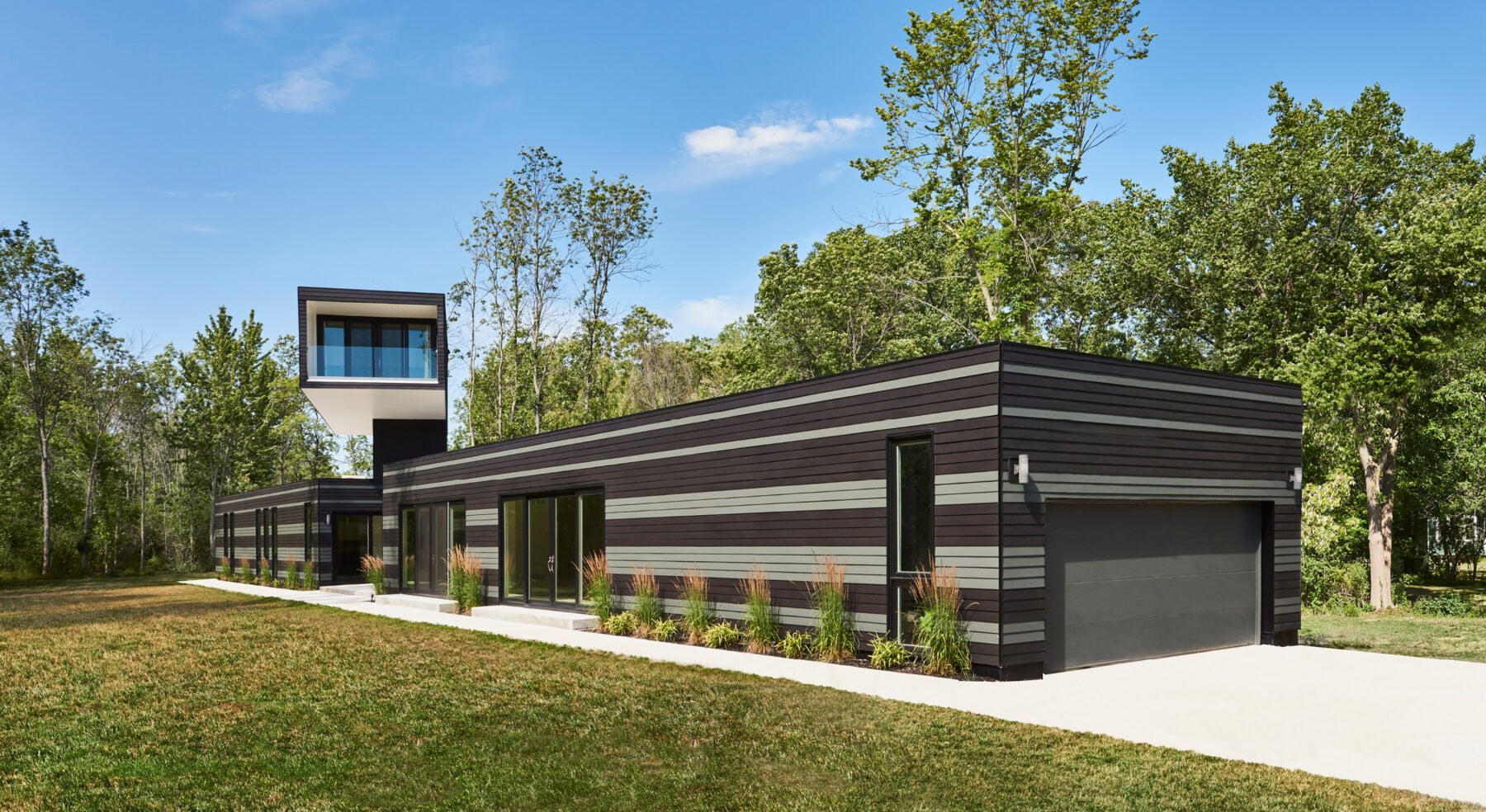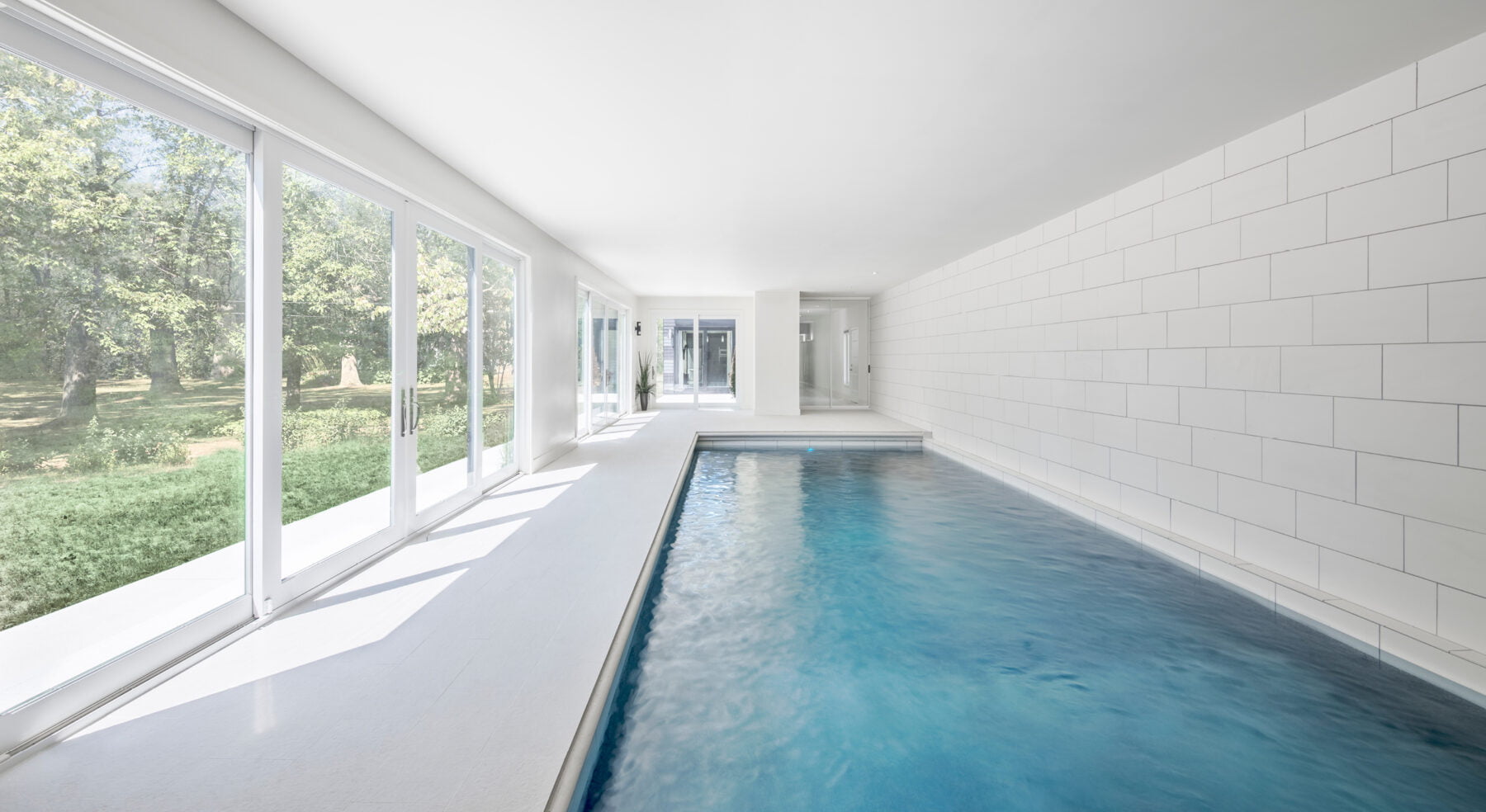The main floor of the home is an elongated expanse that includes all of the common spaces plus two additional bedrooms, an indoor pool and a garage. This configuration provided the desired privacy while harnessing the view of the lake beyond.
