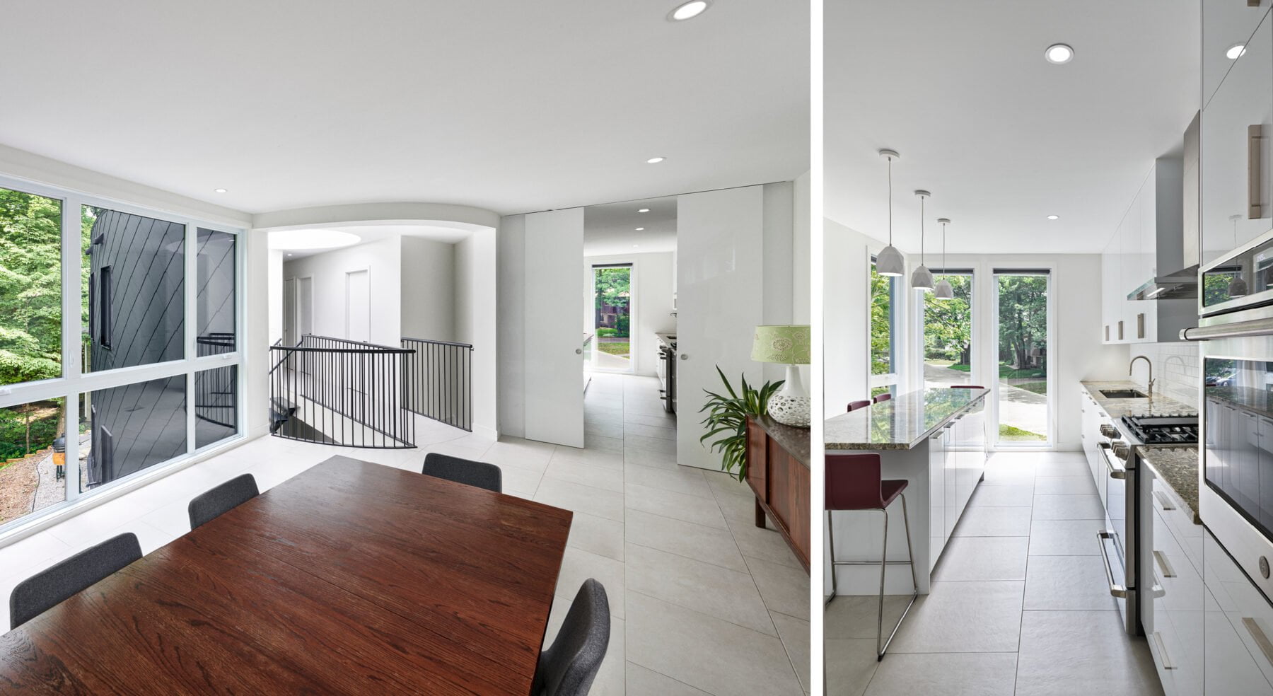 As with all our architecture, pragmatic constraints came first, and the aesthetics emerged from those requirements. Unlike a typical house, the DASH Home (DASH being an acronym of each family member’s first name) places the primary living functions on the second floor. The grade-level includes a small stair hall, a two-car garage, a caretaker suite (to be completed if ever needed), and an elevator shaft (currently empty, with the elevator to be added if ever required).