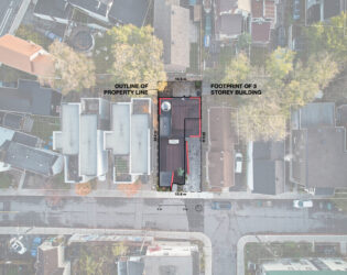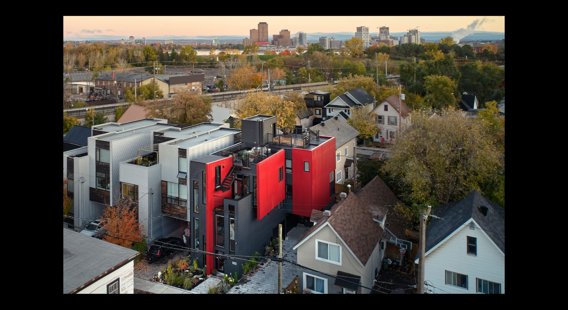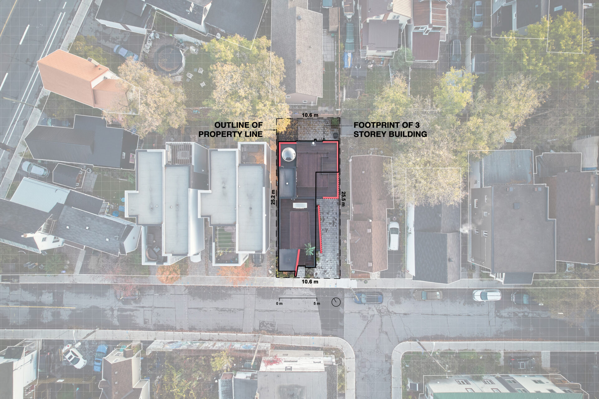 Because it has two homes on one tiny lot, the project increases urban density instead of contributing to urban sprawl, avoiding the destruction of natural habitat. This location also eliminates the need for cars, as the sisters can shop for groceries and socialize in their neighbourhood.