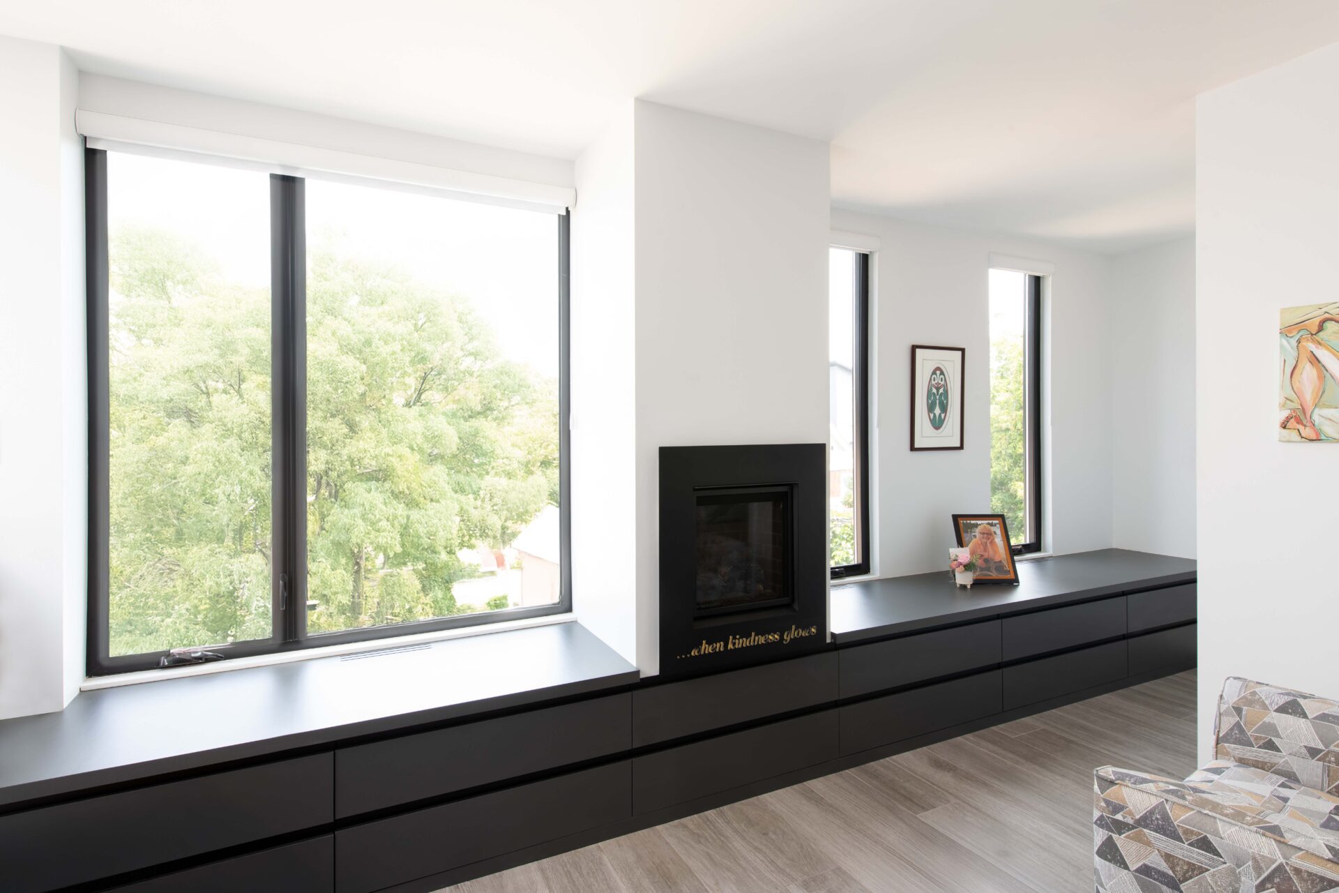 To accommodate the residents’ inevitably changing physical abilities, each home is equipped with an elevator that joins upper-level living areas with lower-level suites for potential live-in caretakers.