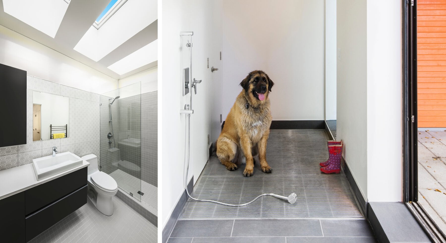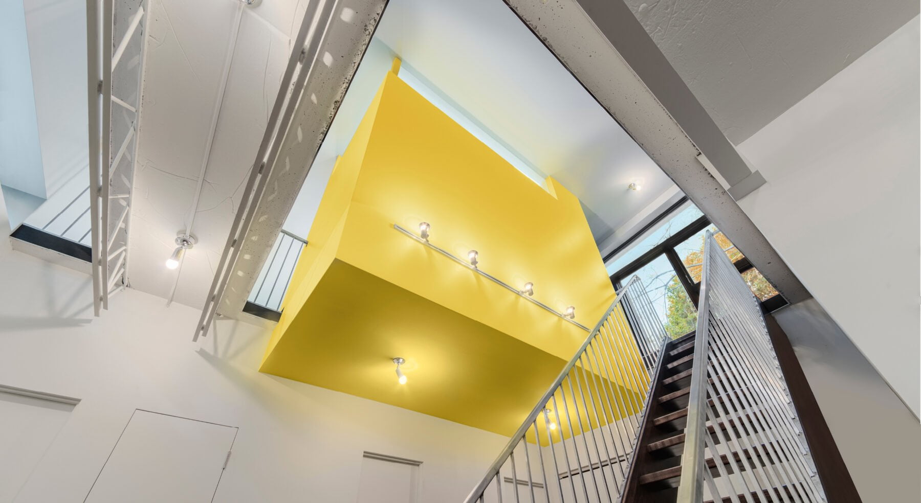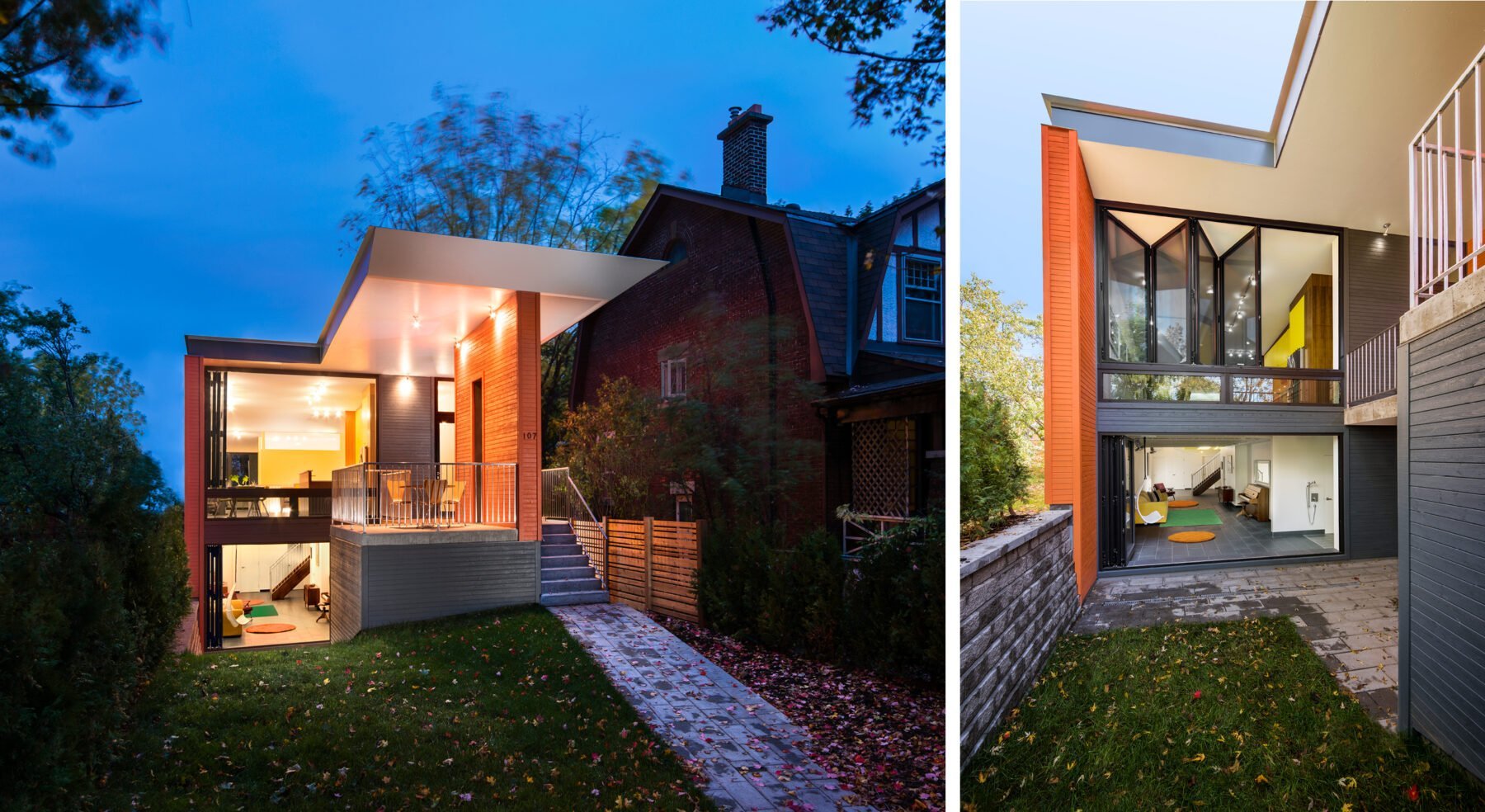 Light is brought into the centre of the home through an ensuite bathroom that features a large opening in the floor plate. Fitted with expansive skylights and clerestory, light pours through the opening, illuminating both levels. In such a narrow space that doesn’t allow for side windows, one might think this home would end up rather dark inside. But with some clever and somewhat unconventional design approaches, the Stacey-Turley Residence is bursting with light and has proven to be an eminently livable space for decades to come.