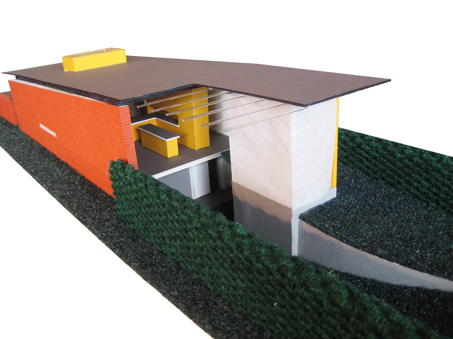 The main floor’s roof overhang is calibrated to block the summer sun, while the lower-angled winter sun penetrates the home. The sloped roof continues through the interior and reaches 14-feet to catch light and to create a “chimney effect”, accelerating breeze down the length of the house, eliminating the need for air conditioning.